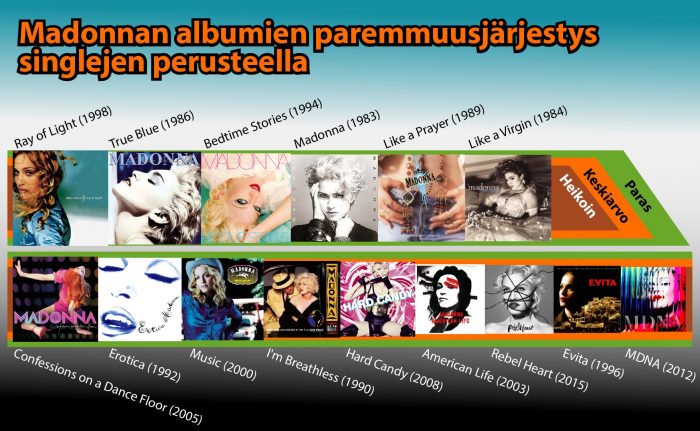 Tässä juttukokonaisuuden kolmannessa osassa paljastetaan sijat 20–11 sekä kerrotaan, mikä on singlejen perusteella Madonnan paras albumi. Koko homman tuottajan pallilla hääri Markus Hilden, grafiikat teki Kimmo K. Koskinen.